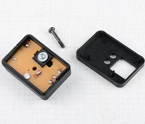 The light switch was used on Babetta and Korado motorcycles with the Domino handle. The switch has a switch for turning the lights on and off, a horn button, and an engine stop button.