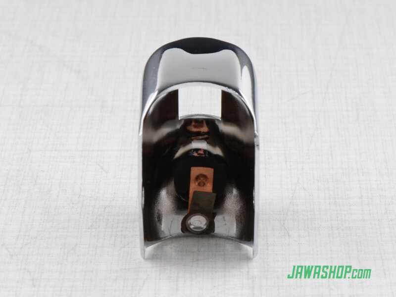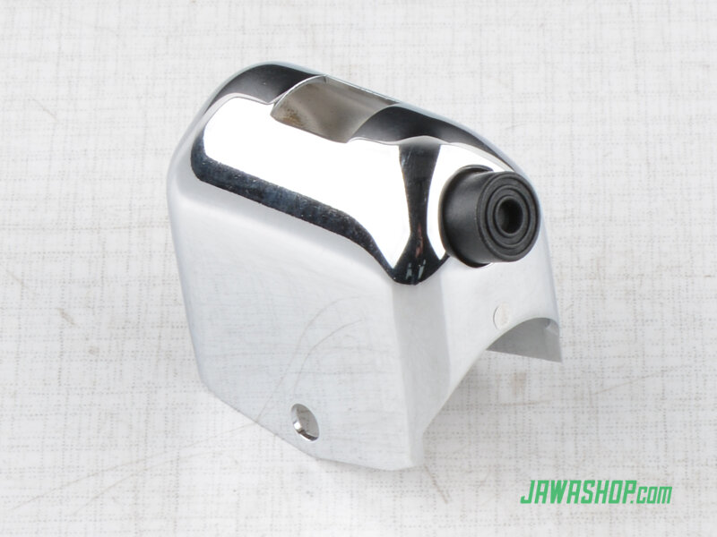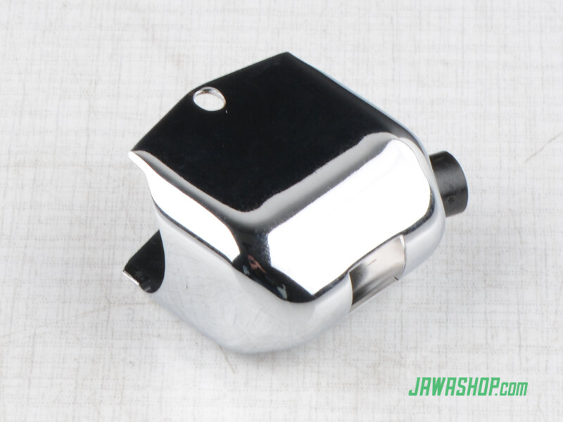 Separate switch cover without side opening for cables. I.e. for switches where cables are routed through the handlebars. Use for Jawa, CZ, Pioneer. Chrome finish. Can be combined with the internal parts of the original switch. The cover already has a riveted horn button.