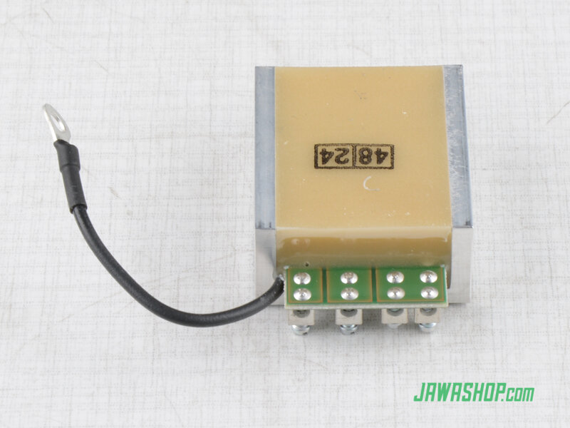 The regulator is designed to regulate derivative dynamos in a connection with the so-called negative regulation, where the regulator switches the excitation winding of the dynamo against the ground and for a network with a nominal voltage of 12V, which is operated with the negative pole of the battery on the ground. The regulator ensures regulation of the dynamo output voltage, its protection against current overload and the function of a reverse switch, which separates the battery from the dynamo in the event of reverse current from the battery to the dynamo when the engine is stopped or in the event of a dynamo failure.